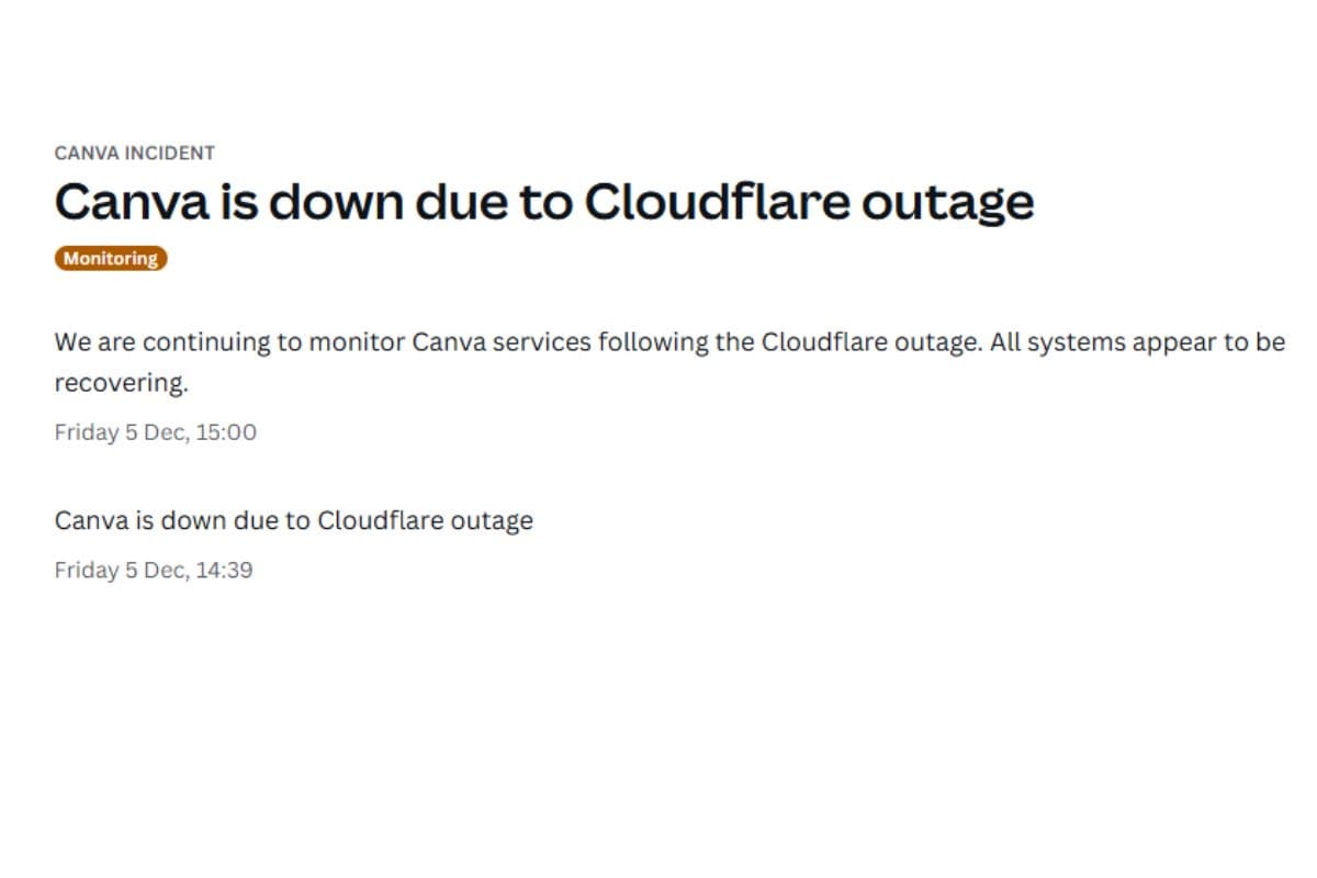 Popular editing tool Canva was also part of the affected list which shared a post on X confirming the outage.