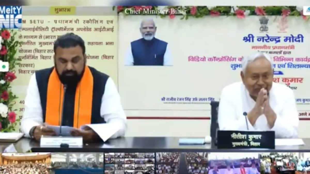 RJD leader Tejashwi Yadav, who is now the leader of the opposition, shared a video of the function held in New Delhi, which Bihar CM Nitish Kumar attended virtually from his residence. (Image: @yadavtejashwi/X)