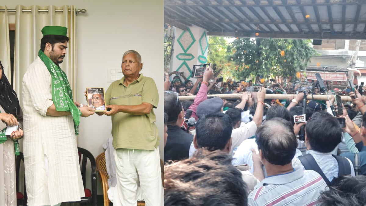 A couple of hours before he arrived at his residence in a cavalcade of black SUVs, hundreds of young RJD workers had already gathered outside the SDO court where he filed his nomination, waving flags, chanting slogans, and hailing the return of the ‘Sahab’s legacy.’