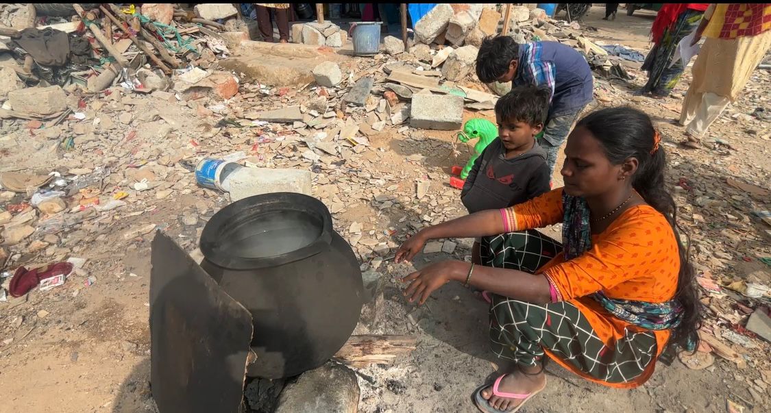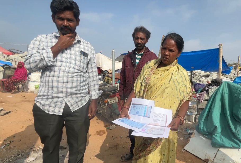 “My husband died in a road accident. I work in houses to take care of my two sons," Rameeza said. “They study in a nearby school. I was told this land was allotted earlier. Now they are asking for papers. We are searching for them in a house that has been reduced to dust."
