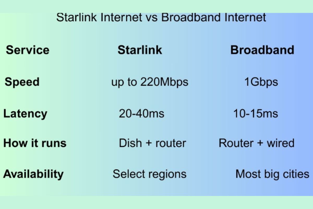 Broadband internet runs via the fixed lines connected around your area. The overall cost of setting it up is much lower than what SpaceX is investing in the Starlink satellites, which allows the companies to offer high-speed data internet at affordable prices.