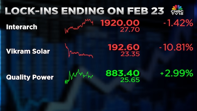 The lock-in period for at least three out of the 11 recently-listed stocks ends on Monday. Both Interarch and Quality Power have more than doubled from their IPO price, while Vikram Solar is down 42%.