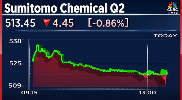 Following the earnings announcement, shares of Sumitomo Chemical India Ltd. are trading 1.09% lower on Monday at ₹512.90. The stock is down 3% on a year-to-date basis.