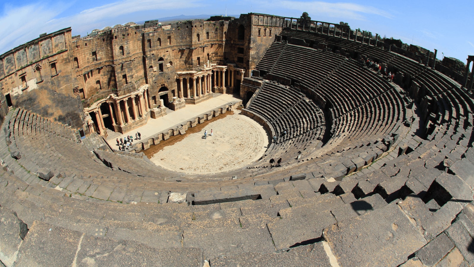 The Ancient City of Bosra, in Syria, was the capital of the Arabian part of the Roman Empire and is a UNESCO World Heritage Site. It is situated 40km east of Daraa and about 140 Km south of Damascus. Its most famous structure is the beautiful Roman Theater. Far from its glory days, the Ancient City of Bosra and specifically the theater were severally damaged by mortar shelling and gunfire during the civil war in Syria that began in March 2011. (Image: UNESCO)