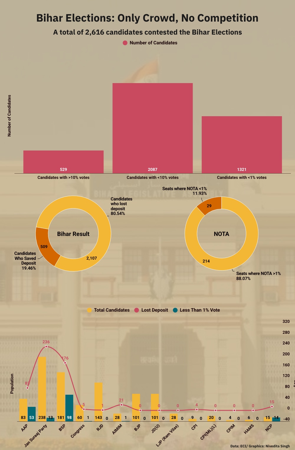 The massive deposit losses and the overwhelming presence of sub-1 per cent candidates show how Bihar’s democracy invites everyone to contest—but only a few truly compete.