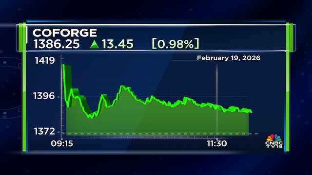 Coforge shares gained 3.3% to hit an intraday high of ₹1,418 apiece on Thursday. The stock was up 1.4% at ₹1,392.2 apiece around 10.30 am. It has declined 19.5% in the past month.