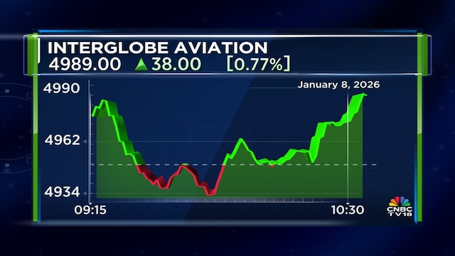 InterGlobe Aviation shares are currently trading at ₹4,990 as of 10:37 AM on the NSE.