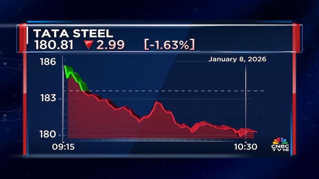 Tata Steel shares are currently trading at ₹180.81 as of 10:35 AM on the NSE.