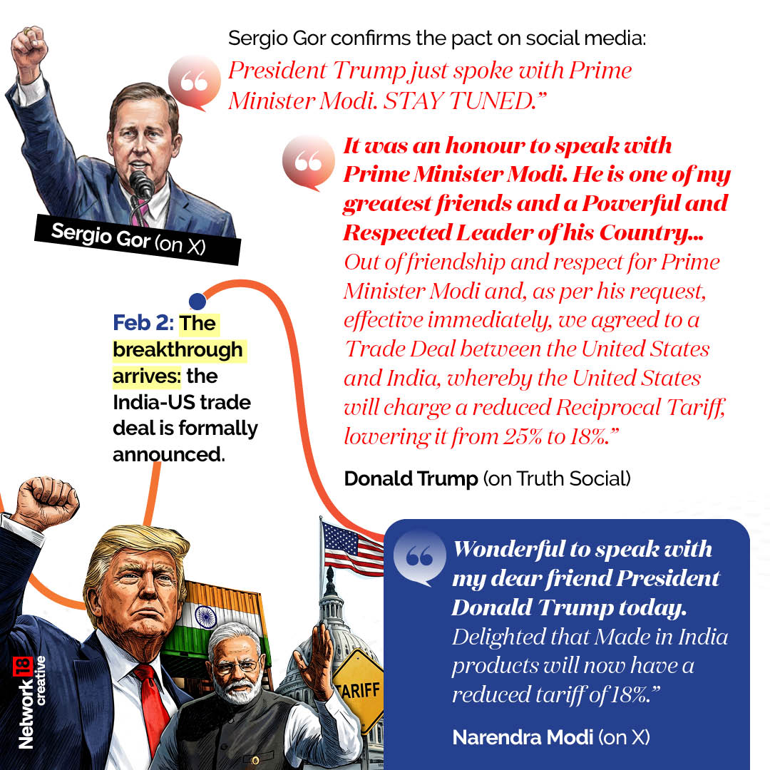 Speaking to News18, US Ambassador Sergio Gor said the trade deal was sealed due to the close personal relationship between PM Modi and Trump, which played a key role in its progress.
