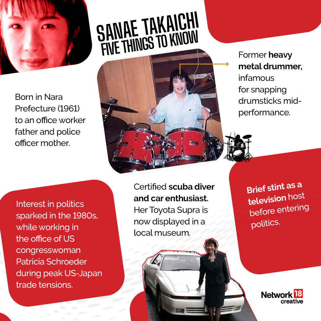 Before entering politics, Sanae Takaichi had a brief stint as a television host. A former heavy metal drummer, she is infamous for snapping drumsticks mid-performance. (Netwrok18)