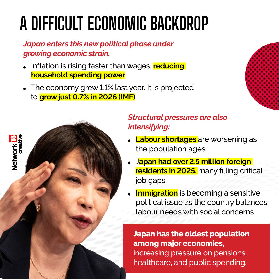 Takaichi faces several challenges such as inflation, labour shortages as the population ages. Immigration has also become a sensitive political issue. (Network18)
