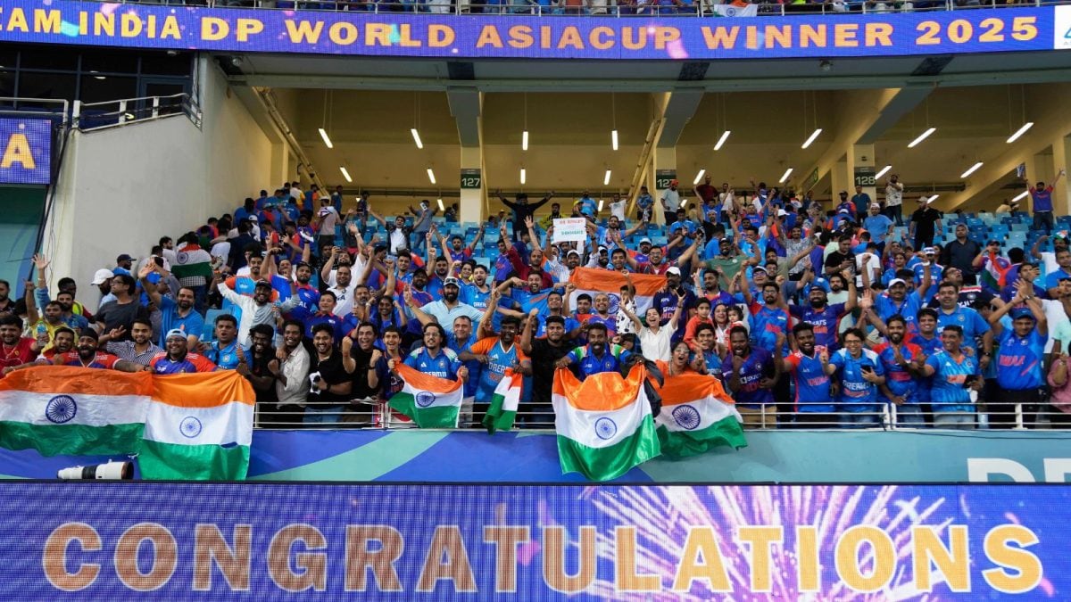 Fans celebrate after India won the Asia Cup cricket final against Pakistan at Dubai Cricket Stadium, UAE, on September 28. (Image: AP/Altaf Qadri)