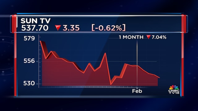 Shares of Sun TV Network Ltd ended at ₹537.70, down by ₹3.35, or 0.62%, on the BSE.