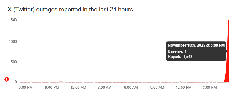 As per DownDetector, at least 1,543 complaints were registered against X till 5:08 pm.
