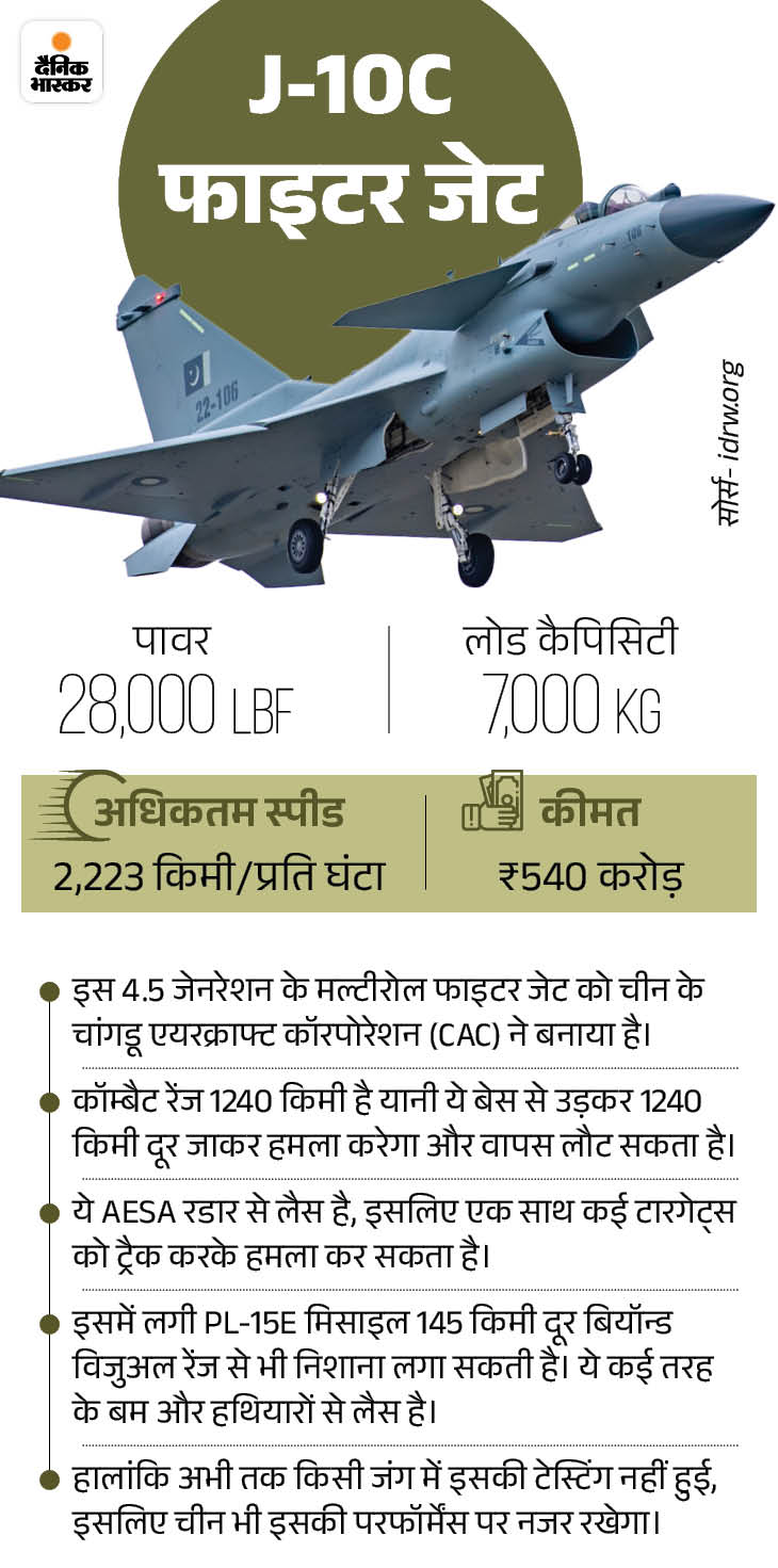 मई में पाकिस्तान ने संघर्ष के दौरान भारत के खिलाफ जिन फाइटर जेट्स का इस्तेमाल किया था उसमें J-10C फाइटर जेट भी शामिल था। भारत के स्वदेशी हथियारों (जैसे ब्रह्मोस और आकाशतीर) ने इन्हें नाकाम कर दिया था।